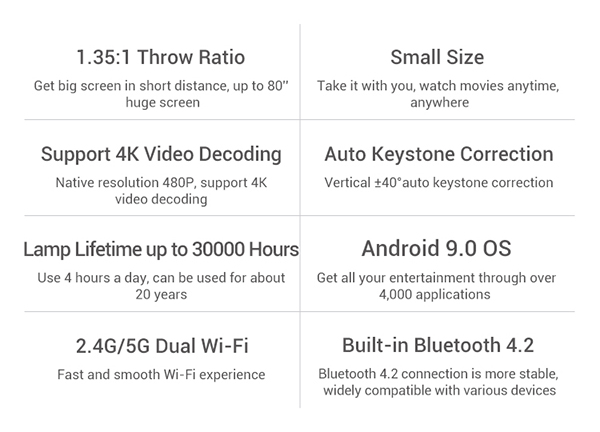 WVGA 854*480P, Support 4K