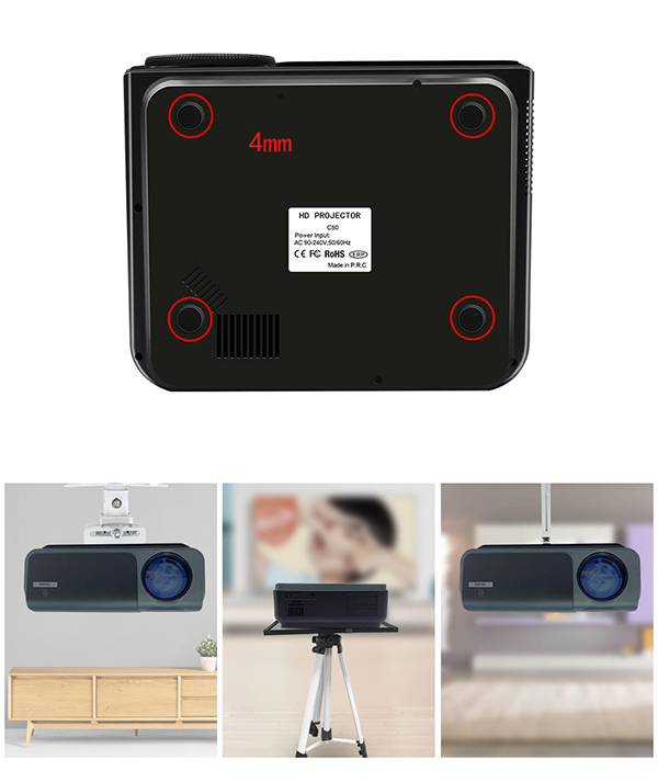 Front. Rear. Ceiling Mount. table top