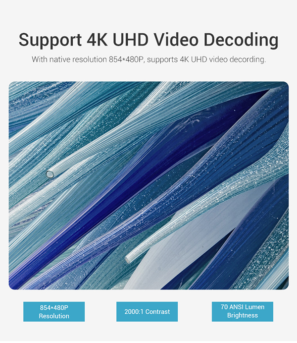 WVGA 854*480P, Support 4K